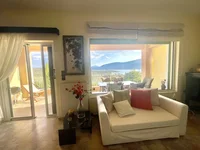 Flat hat Frontlayout. Ein herrlicher Blick auf das Meer, der Berg öffnet sich aus den Fenstern. Es gibt: Sonnenkollektoren für Wasserheizung, Kamin, Klimaanlage, Markisen, Heizung. Die Besitzer werden die Möbel mit dem Verkauf verlassen. Gebäude hat einen Aufzug. Extras mit der Unterkunft: Garten, Garage.
