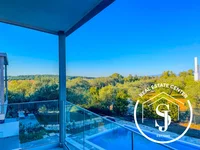 Wenn Sie die Vorderseite des Hauses betreten, werden Sie in einem großen, offen gestalteten Freizeitbereich mit hohen Decken und großen Fenstern begrüßt, die den Raum mit natürlichem Licht durchfluten und Sie auf den großen Balkon mit Blick auf das Meer und den Pool führen, der auf Wunsch ein echter Hingucker ist.