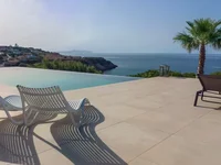 Eine bemerkenswerte Eigenschaft dieser Villa ist, dass neben ihm finden Sie eine 30 m2 Innen Stein gebaut Weinkeller gebaut mit einzigartigem Design und Geschmack, in einer unterirdischen Höhle untergebracht. Draußen bietet der große Infinity-Salzwasserpool mit Sonnenliegen und Sonnenschirmen den perfekten Platz zum Entspannen und genießen einen spektakulären und unverbauten Blick auf das Meer. Optional kann es ab Sommersaison verwendet werden, da sein Wärmepumpensystem es ideal für den Winter macht. Es versteht sich, dass der BBQ-Bereich mit dem großen Esstisch & Küche und der komplett angelegte Garten auch zu seinem Reiz hinzufügen. Schließlich machen Photovoltaik und Solarpaneele das Haus autonom, wenn es um Strom und heißes Wasser geht.