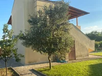The beautifully landscaped 900 sq.m. plot is rich in greenery, featuring pine trees, plum trees, olive trees, and pomegranates. It includes: