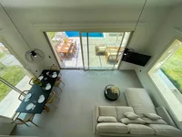 Es gibt 3 Ebenen in der Villa. Das Kellergeschoss besteht aus 2 Schlafzimmern und einem Badezimmer. Das Erdgeschoss besteht aus einem Wohnzimmer mit einer Küche, einem Schlafzimmer, einem Badezimmer und einer Veranda. Der 1. Mansardboden besteht aus 2 Schlafzimmern und einem Badezimmer.