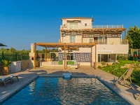Große Terrasse mit Pergola und unbegrenztem Meerblick