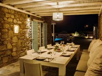 Diese elegante Villa ist ein hochmodernes Design, ideal für Menschen mit einem feinen Geschmack zum Leben. Es besteht aus 2 Schlafzimmern im Obergeschoss mit en-suite Badezimmern .Diese Schlafzimmer haben Zugang zu einer großen Veranda mit spektakulärem Meerblick. Ein drittes Schlafzimmer mit eigenem Bad befindet sich im Erdgeschoss. Ein weiteres Schlafzimmer mit eigenem Bad befindet sich ebenfalls im Erdgeschoss, einem großen Studio, das mit dem Haupthaus verbunden ist, aber auch einen eigenen Eingang für zusätzliche Privatsphäre bietet. Ein großes Wohnzimmer befindet sich ebenfalls im Erdgeschoss mit bequemen Sofas mit Blick auf den Pool durch ein großes Fenster. Direkter Zugang zum Pool vom Wohnzimmer. In der Nähe des Pools befindet sich ein unabhängiges Studio mit einem großen Doppelbett mit eigenem Bad, ideal für ein Paar. Der private Pool mit den bequemen Sonnenliegen ist ideal, wenn Sie zu Hause am Pool entspannen. Unter einer schattigen Pergola mit einem großen Tisch befindet sich ein Essbereich im Freien, an dem Sie unter Kerzenlicht frühstücken, zu Mittag oder zu Abend essen können. Der Außenbereich befindet sich unter einer schattigen Pergola mit eleganten Gartenmöbeln. Es gibt auch ein großes Sofa aus Stein mit einem Tisch aus Stein, auf dem Sie nach dem Schwimmen sitzen und die griechische Sonne mit einem schönen kalten Getränk genießen können. Die weißen Wände und Möbel im Innenraum schaffen eine raffinierte Atmosphäre. Eines der Hauptmerkmale dieser Villa ist, dass alle Schlafzimmer über ein eigenes Duschbad mit separaten Toiletten verfügen, was zusätzliche Privatsphäre bietet. Die Villa wurde von einem berühmten griechischen Architekten entworfen, der die lokale kykladische Architektur mit dem modernen Design kombinierte. Die Villa bietet Platz für 10 Personen, maximal 11 Personen. Es gibt einen Parkplatz für 3 Autos.