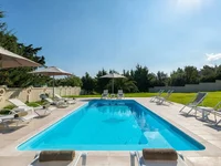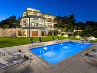Wir präsentieren Ihnen zum Verkauf eine elegante 3 -stöckige Villa mit möblierten vier luxuriösen Zimmern und einer Master-Suite mit spektakulärem Blick auf den Wald, die Gärten und das blaue Mittelmeer. Es gibt eine große Küche, einen Ess- und Sitzbereich, eine Kamin-Sitzfläche und einen Flachbild-TV. Der private Außenbereich verfügt über einen Pool (9 x 4 x 1,5 m) mit Sonnenliegen und Sitzecke. Die Villa verfügt über geräumige Terrassen und Balkone mit herrlichem Blick und vollständiger Zentralheizung und Klimaanlage sowie einen Kamin für die Wintermonate. Die Villa bietet Platz für bis zu 9 Personen. Das Anwesen ist von Zitrus- und Orangenbäumen und Palmen umgeben, die sich bis zu einem kleinen privaten Wald mit Kiefern und Zypressen erstrecken. Es verfügt über einen privaten Parkplatz in der Unterkunft und verschiedene Gartenbereiche.