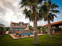 Eine elegante 380 m² große freistehende Villa zum Verkauf auf Kreta. Die Villa ist modern gebaut und befindet sich auf einem 3700 m² großen Grundstück außerhalb des Ferienortes Elounda. Das Anwesen bietet einen herrlichen Blick über die Stadt und die Bucht.