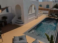 Zu verkaufen 4-stöckige Villa von 150 qm in Santorini. Halbgeschoss besteht aus einem Schlafzimmer, Wohnzimmer mit Küche, ein Badezimmer, ein Abstellraum.