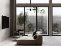 Premium TOWNHOUSE CANGGU mit Designer-Architektur. Panoramafenster mit Blick auf den Pool und den malerischen Garten. Das Haus ist komplett mit erstklassigen Geräten, Sanitäranlagen und anderen innovativen Komponenten auf dem Niveau eines 5-Sterne-Hotels ausgestattet.