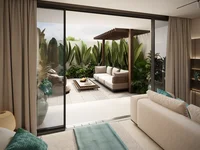 Smart-villa-Format ist ein vollwertiges Haus mit eigenem Eingang, Terrasse und Grünbereich, befindet sich im ersten Stock des Komplexes mit Wohnungen.