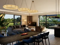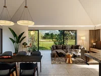 Each villa spans two levels, thoughtfully crafted to maximize space and comfort. With three bedrooms, three bathrooms, and a stylish open-plan living and dining area, the interiors are a perfect balance of modern sophistication and natural charm. Expansive windows frame stunning views of the lush golf course and surrounding mountains, while high-end furnishings and rain showers add a touch of indulgence. The villas are sold fully furnished, ensuring a seamless move-in experience or an effortless rental setup for those looking to generate passive income.