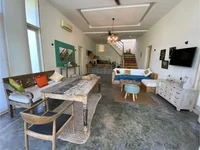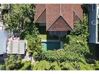 Built in 2005, the villa features three spacious bedrooms and three well-appointed bathrooms, each equipped with a bathtub, shower unit, and single sink. The simple yet functional kitchen seamlessly connects to the dining area and the cozy, close-concept living room, which faces the rectangular 7×4 meter swimming pool. This south-facing villa offers serene views of the pool and garden, creating a peaceful retreat from the bustling surroundings.