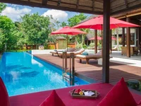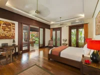 Das Anwesen erstreckt sich über 1850 m2 und verfügt über 4 Schlafzimmer (drei Doppelzimmer, ein Doppelschlafzimmer), die jeweils einzigartig mit asiatischen Einflüssen gestaltet sind und an ein dekadentes Außenbad angeschlossen sind. Durch die Vordertür gelangen Sie in eine angelegte Gartenoase, die das Anwesen umgibt und den riesigen 20 Meter langen Becken und einen zweiten 10 Meter großen quadratischen Pool. Das hervorragende Anwesen verfügt über einen sehr schönen und komfortablen offenen Wohnbereich und einen klimatisierten Multimedia/TV-Raum. Der Essbereich und die moderne voll ausgestattete Küche nimmt einen eigenen separaten Pavillon ein. Es gibt Liegestühle rund um die Pools sowie einen Ruhepavillon am Ende des Beckens. Die östliche Villa ist einwandfrei eingerichtet und es gibt auch Parkplätze für Autos.