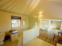 Drittes Gebäude: – 2 Stockwerke – 1 Schlafzimmer + Badezimmer im Erdgeschoss – Offener Wohnbereich im Obergeschoss Umgeben von einer geräumigen Terrasse mit dem bequemen großen Stuhl, ein perfekter Ort zum Genießen des majestätischen Panoramas des Ozeans und der Halbinsel Bukit