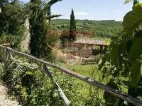 В залах ресторана "дель-Борго" гостям виллы предлагаются блюда высококлассной тосканской кухмнилас. Классические старинные блюда Тосканы в наши дни здесь перевоплощаются в современные рецепты, пригот Земельный участок, окружающий эту шикарную виллу, выставленную на продажу в зоне Кьянти, растягива.