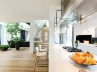 Die Wohnung verfügt über einen großen und hellen Wohnbereich mit offener Küche, zwei Schlafzimmer auf der Etage, eines davon mit Doppelbett, ein Badezimmer und einen Hauswirtschaftsraum mit Waschküche; im ersten Stock gibt es eine abgeschiedene Master-Suite mit begehbarem Kleiderschrank, eigenem Bad und großer Terrasse.