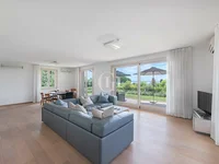Im Erdgeschoss befinden sich eine große Taverne, eine Waschküche, ein Technikraum und ein weiteres Zimmer. Angeschlossen an die Villa ist eine große Garage, die Platz für bis zu 3 Autos bietet. Die Aufteilung der Räume im Untergeschoss kann leicht an die persönlichen Bedürfnisse und den eigenen Geschmack angepasst werden.