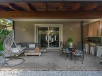 Im Erdgeschoss gelegen, bietet diese Wohnung außergewöhnliche Momente im Freien, einschließlich eines privaten Gartens und einer charmanten überdachten Veranda mit einer zweiten Küche, ideal für Mahlzeiten im Freien. Im Garten befindet sich außerdem ein privater Hydromassage-Pool, der zum Entspannen und Genießen von Momenten der Freizeit in absoluter Privatsphäre einlädt.
