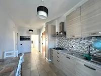 A apartment is sold on VIA Luini Street, located in a quiet area well -served stores, public transport, schools, supermarkets and pharmacies. A large two -room apartment with an area of ​​65m2 is located on a panoramic sixth floor of a house with an elevator. The entrance to the living room leads to the kitchen-dining room and to a small laundry room with a window. The apartment has a veranda, a bedroom with a double bed, with a large and light balcony, as well as a bathroom with a shower, a toilet and a window. In addition, it is equipped with a pantry and was completely repaired, furnished and equipped with a conditioning system. The property includes the appropriate basement. The apartment is free immediately.