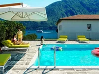 Wohnung im zweiten Stock 78 m2: Wohnzimmer mit Küche, 2 Schlafzimmer, 1 Badezimmer, Terrasse mit Blick auf den See. Garagen im Untergrund - 28.000 Euro.