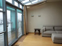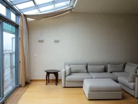 Ausgezeichnetes Lay-Out: geräumiges Wohnzimmer mit Kamin, offene Küche mit allen Geräten, Hauptschlafzimmer mit Terrasse und Badezimmer mit Jacuzi, zweites Schlafzimmer, zweite Terrasse, Gästetoilette, begehbares Ankleideraum und kleines Büroraum. Die Wohnung verfügt über eine Klimaanlage und beheizte Böden in den Badezimmern. Parkplätze in der Nähe des gebäudes (EUR 60/pro Monat).