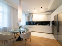 Das Interieur verfügt über eine elegante Kombination aus moderner Kunst und hoher Funktionalität. Die Einzigartigkeit jeder Wohnung wird durch Holz und Glas Innenobjekte gegeben - Werke von berühmten Künstlern.