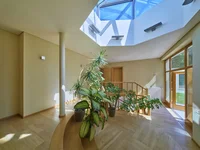 Im Erdgeschoss des Hauses dort werden gelegen: Große Werkstatt für 3 Autos, geräumiges Wohnzimmer mit dem Kamin und dem Hauptstück des Hauses - ein glassed haben besonders Möbel, KURORT-Zone mit der Sauna, der Dusche und einem kleinen Schwimmbad, der völlig ausgestatteten Küche, der Studie, dem technischen Zimmer und der Gasttoilette entworfen. Im zweiten Stock gibt es 3 Schlafzimmer, jedes mit eigenem begehbarem Schrank und einem großen Badezimmer. Es gibt auch Ausgang zu einer großen Dachterrasse. wird Das Haus gebaut, um maximalen Betrag auf dem Licht zu begrüßen.