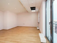 This apartment offers extensive possibilities for customization according to your preferences. Previously used as an office space, providing you with a unique opportunity to create your own layout. Currently, the apartment is divided with easily removable glass partitions, with the option to connect two bathrooms and kitchen appliances.