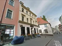 Die Fenster schauen auf Jekabs und Mazais Pils Straßen.