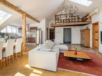 Ein Appartment in Riga, eine prestigeträchtige Lage, iUnique Dachgeschosswohnung von 153 m2, befindet sich in einem ruhigen Zentrum, Die Wohnung bietet einen großen Wohnzimmerbereich mit 4,3 m Deckenhöhe und Kamin. Es gibt drei Schlafzimmer und zwei Badezimmer – ein Badezimmer mit Badewanne und Dusche, während das andere eine Dusche und Sauna hat. Der ursprüngliche Turm des Hauses wurde in das Wohnzimmer gebaut und bietet eine atemberaubende Architektur.