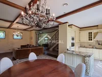 Three buildings are located on a landscaped territory - the main house of 440 m2; which is divided into two parts with a separate entrance - the main - 320 m2 (1st floor - fireplace room, kitchen-dining room, billiard room, bathroom, laundry, boiler room. 2nd floor - bathroom, bedroom, study room, master bedroom with bathroom and dressing room. 3rd floor - large studio bedroom with bathroom), and a small one - 120 m2 (1st floor - kitchen combined with a fireplace room, bathroom. 2nd floor - two bedrooms, bathroom). Garage for 3 cars. Sea is just 15 minutes walk away.
