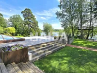 - ein geräumiges Wohnzimmer mit einem Ausgang zum Garten und einem eigenen Strand;