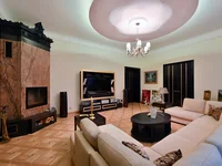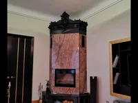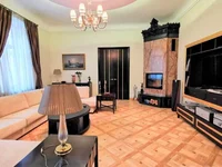 Ein großes Wohnzimmer und ein Büro mit exklusiven, exquisiten Möbeln, ein alter restaurierter Ofen kann wie ein Kamin beleuchtet werden, gibt es auch einen Kamin im Büro.