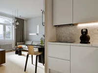 Das Innendesign wird von natürlichen Materialien und neutralen Farbpaletten dominiert, die eine harmonische und funktionelle Umgebung schaffen. Die Zimmer sind mit intelligenten Technologien ausgestattet, mit denen Sie die Beleuchtung und das Klima individuell anpassen können. Der grüne Innenhof schafft eine private und friedliche Umgebung im Stadtzentrum und bietet Bewohnern einen harmonischen Wohnraum.