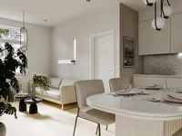Das Innendesign wird von natürlichen Materialien und neutralen Farbpaletten dominiert, die eine harmonische und funktionelle Umgebung schaffen. Die Zimmer sind mit intelligenten Technologien ausgestattet, mit denen Sie die Beleuchtung und das Klima individuell anpassen können. Der grüne Innenhof schafft eine private und friedliche Umgebung im Stadtzentrum und bietet Bewohnern einen harmonischen Wohnraum.