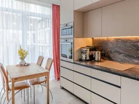 Das Haus befindet sich auf einer Sackgasse, die Privatsphäre bietet - es gibt keinen Verkehr, nur Sie und ein paar Nachbarn werden ihre Autos auf einem privaten Parkplatz parken. Komfort in der Wohnung schafft eine Fülle von Licht, Perimeter Beleuchtung, hochwertige Möbellösungen, versteckte Innentüren und Kanalkanäle mit Erholung.