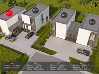 • Jedes Haus hat einen umzäunten Innenhof von ~ 4 ares, ein ebener Grundstück, Stämme, 2-3 Parkplätze.