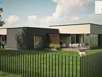 Das moderne, hochwertige Gebäude eines einstöckigen Hauses wird im Entwicklungsprojekt "Nova Namai" bei Naujog verkauft. Ucmerge.