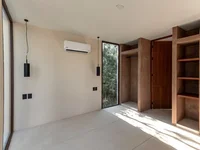 Der offene Wohnbereich verbindet nahtlos moderne Eleganz mit natürlichem Charme. Eine geräumige Küche Insel, Premium-Travertine-Arbeitsplatten, und mühelos Zugang zum privaten Garten und Pool machen unterhaltsam eine Freude. Eine üppige Oase erwartet draußen, komplett mit einem glitzernden Pool zum Abkühlen unter der warmen Sonne von Tulum.