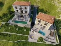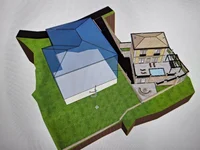 Es gibt technische Bedingungen und Ideen für den Bau von zwei Häusern - ein zweistöckig und der zweite - dreistöckig