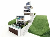 Die Fläche der Villa 1 beträgt 200 m2, die Fläche des Grundstücks beträgt 330 m2.