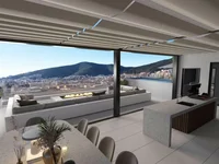 Penthouse is located on top two floors in building in calm neighbourhood of Budva, with excellent direct view to the sea, Budva Old Town and island Saint Nicolas. The building where is located 1 km from the sea, it is on the sunny side of the hills offering spectacular sunsets.