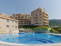 Budva Riviera, Stadtteil Becicici. Neue Luxus-Wohnung mit zwei Schlafzimmern in einer renommierten Wohnanlage mit einem Panoramapool im Freien