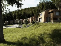 Die Villen umgeben das zentrale Hotel. Ein Restaurant mit einer Außenterrasse, einer Bar, einer Konferenzhalle, Tiefgaragen, mehrere Bereiche für Sport und Freizeit sowie ein Wellness- und Wellnessbereich mit Pools sind geplant. Dieser Komplex von Bergvillen und Hotels wurde von einem bekannten Architekturstudio entworfen, inspiriert von alpiner Tradition und Ästhetik. Der Design-Ansatz zeichnet sich durch die Verwendung von Holz und Stein aus, wobei die natürliche und ökologische Ästhetik, die Basis des gesamten Komplexes ist, betont wird.