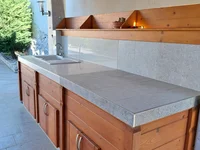Предлагается дом с бассейном, оборудованной летней кухней и отдельно стоящим подсобным помещением.