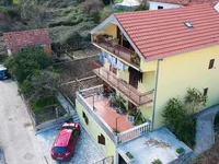 The house consists of three floors, on which there are five bedrooms, two bathrooms and a spacious attic floor with a terrace. There are two parking spaces in front of the house, one of which is covered. There is a fruitful garden on a flat plot. The house is surrounded by greenery and flowers.