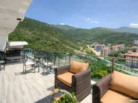 Vom Wohnzimmer aus gibt es Zugang zu einer großen Terrasse (12 m2) mit Blick auf das Meer. Das erste Schlafzimmer hat einen Meerblick, das zweite Schlafzimmer hat einen Bergblick.