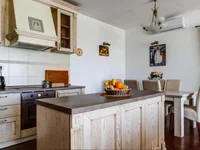 Layout der Villa: Im ersten Stock befindet sich ein geräumiges Wohnzimmer mit einer Küche und einem Esszimmer, einem Schlafzimmer und einem Badezimmer. Vom Schlafzimmer und dem Wohnzimmer ist es möglich, in den Innenhof der Villa zu gehen, wo es einen großen Pool und Grillplatz gibt. Im zweiten Stock befinden sich drei Schlafzimmer, zwei Badezimmer und zwei große Terrassen, von denen einer hinter dem Haus liegt. Die Terrasse bietet einen schönen Panoramablick auf das Meer und das Dorf. Die Villa ist komplett stilvoll eingerichtet. Es ist mit einem Ofengerät in jedem Zimmer ausgestattet, während es einen Kamin im Wohnzimmer gibt.