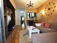 Die Wohnung ist komplett möbliert und ausgestattet und alles in der Wohnung ist individuell gestaltet. Die Wohnung verfügt über ein Wohnzimmer, Küche, zwei Schlafzimmer und ein Badezimmer. Die Wohnung ist auf beiden Seiten ausgerichtet, so dass eine Terrasse das Meer und die Stadt überblickt und die andere Terrasse die Berge überblickt. Es ist möglich, von jedem Zimmer auf die Terrasse zu gehen. Das Apartment verfügt über 2 Klimaanlagen.