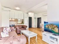 Wohnung zum Verkauf in einem neuen fünfgeschossigen Wohnhaus. Das Gebäude verfügt über einen Aufzug, und es ist 250 Meter vom nächsten Strand in Rafailovici entfernt, nicht weit entfernt gibt es die berühmtesten Fischrestaurants. Die Wohnung verfügt über zwei Schlafzimmer, 2 Badezimmer, ein Wohnzimmer, eine Küche und eine Terrasse. Das Gebäude wird unter Berücksichtigung aller Baunormen gebaut. Die Deckenhöhe beträgt 3.05 Meter.