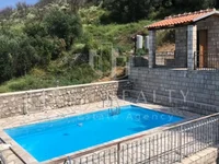 -On the ground floor there is a spacious, bright living room with kitchen, dining room, bathroom and storage room. The entire floor is south facing, spacious and well lit, with four large exits to a huge terrace overlooking the sea. A large, spacious terrace is where you can spend most of the year in the shade of the vines. At the side of the house there is another terrace with an installed grill and old olive trees. Below them there is another part of the site cascading, which can be perfectly used for planting coastal plants. Next door to the house there are new villas with swimming pools and a beautiful landscape full of greenery and olive groves. The property offers stunning 180-degree views of the open sea, and when you add peace and quiet to all this, this property is ideal for people who want to escape the bustling city life.
