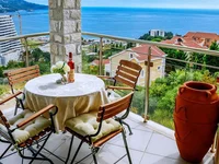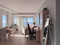 Die Wohnung ist 55m2 und verfügt über ein separates Schlafzimmer, ein Wohnzimmer mit einer Küche, ein Badezimmer und einen Balkon mit Meerblick.